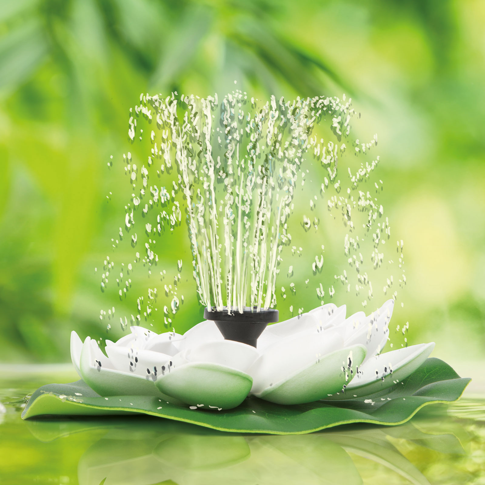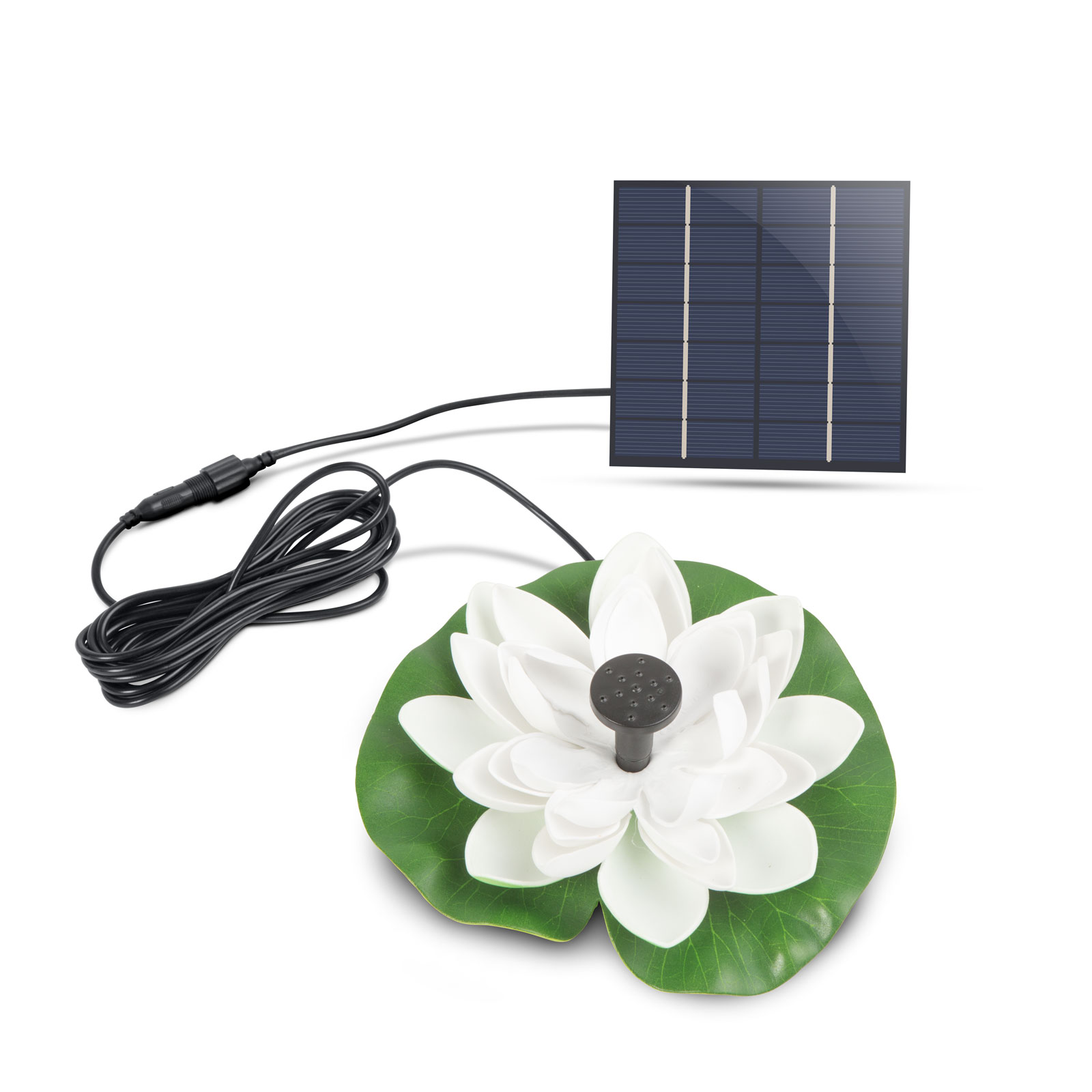 Creeaza o atmosfera placuta in gradina ta cu aceasta arteziana ce poate fi amplasata in iazurile din gradina sau piscine.Este alimentata de soare prin panourile solare incorporate. Nu este nevoie de cabluri, baterii sau alimentare CA. Aparatul poate fi utilizat cu 8 tipuri de duze, astfel oricine va gasi un model pe placul sau.Produsul este usor de utilizat: Puneti duza potrivita pe dispozitiv, conectati unitatea solara folosind mufa intr-un loc uscat si apoi plasati produsul pe suprafata apei.Pompa din partea de jos a unitatii livreaza apa prin duza. Inaltimea jetului de apa depinde ii mare masura de intensitatea soarelui si de cantitatea de lumina furnizata (momentul zilei).Unitate solara externa Aduce suprafata apei la viata Functioneaza intr-un mod ecologic folosind energia solara Porneste chiar si atunci cand este putin soare ( dar functioneaza doar la lumina soarelui) Jet de apa de pana la 50 cm Dimensiune: 180 x 170 x 35 mm Panou solar: 7V / 1,4 W Puterea pompei de apa: DC 4.5V - 12V / 0.5 - 5W Dimensiunea coloanei de apa: Pana la 50 cm Debit apa: 100 - 350 L/h Durata de viata:> 20.000 ore Temperatura de functionare: +5 - (+ 50 ° C) Lungime cablu: 90 cm Culoare cablu: negru Material: plastic (EVA) Greutate: ~ 180 g Culoare: Verde / Alb / Negru