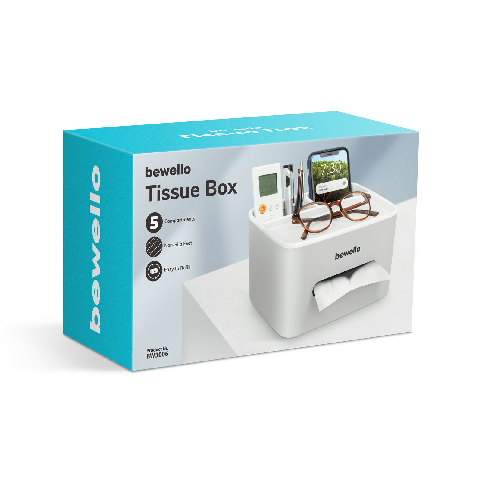 Bewello - Suport-dozator pentru batiste si servetele de hartie - alb - 205 x 160 x 120 mm