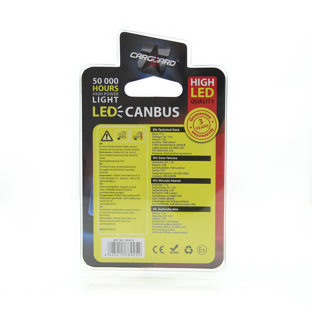 LED  Can115Lumeni:   168                     Tipodimensiune:  T10 - 5W5                       Normal / Canbus:  Canbus                        Tip LED:       24  new ledTensiune:   12V                              Putere:   2 W   A se utiliza in afara drumurilor publice.Atentie: Pretul afisat este pentru un set de 2 leduri !      Â