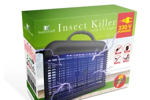 Capcana pentru insecte suprafata si luminozitate mare. Datorita bazei stabile, poate fi asezata pe masa ori pe raft, dar poate fi si agatata la o inaltime de maxim 2-3 metri. Insectele nedorite ca tantarii sau mustele mici sunt atrase de lumina ultravioleta. In drumul lor catre sursa de lumina, electrodul sub tensiune le ucide rapid, fara durere si igienic.Cu iluminare LED Economica Plastic durabil Poate fi agatata Sursa de lumina: 16 + 1 LED-uri Putere: 2 W Tip conector: EURO Alimentare: 230 V, 50/60 Hz, 5 A Tensiune: aprox. 600 V Lungime cablu: ~ 80 cm Dimensiune: 305 x 270 x 70 mm Indice de protectie: IP20 Greutate: ~ 513 g Culoare: negru