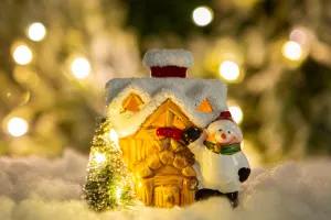 Decoreaza-ti casa atunci cand se apropie vacanta cu casute de iarna. Cabanele au iluminare cu LED alb cald, creand o atmosfera placuta, intima in casa ta. In fata fiecarei cabane se afla o figura draguta de Craciun si un brad cu lumini LED.