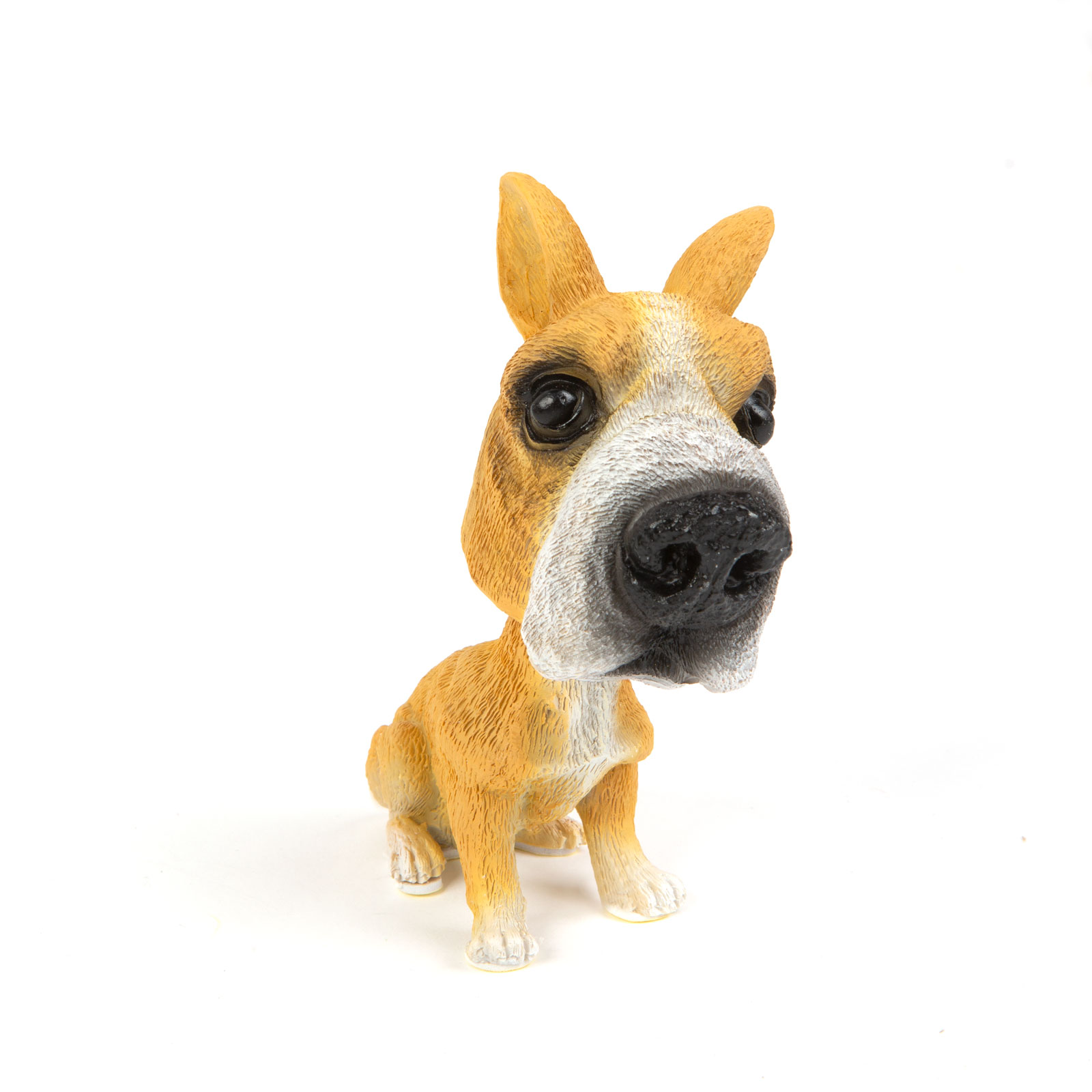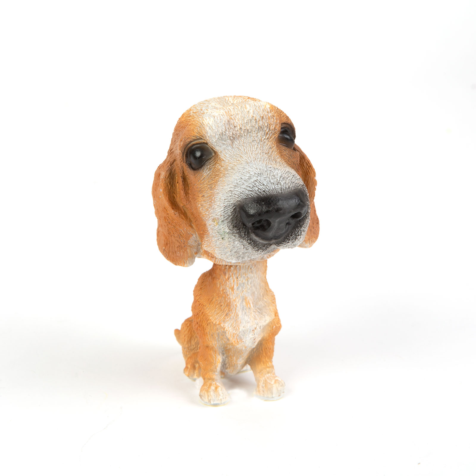 Cine nu ar cunoaste marele clasic, cainele care da din cap, care este din nou in zilele sale de glorie! Poate fi un decor nostim pentru masinile retro si moderne, si poate fi asezat pe suportul de palarie sau pe bord. Miscarea capului este in functie de miscarea vehiculului.