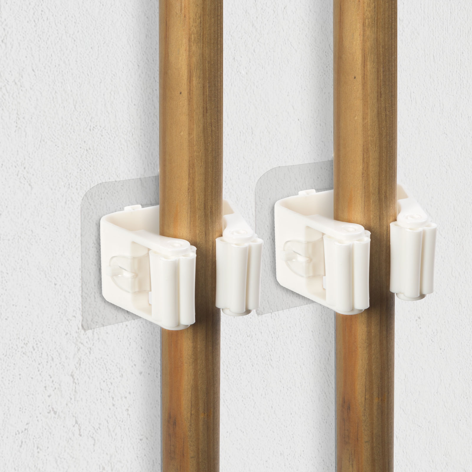 Potrivit pentru depozitarea cu economie de spatiu a obiectelor si instrumentelor de zi cu zi: maturi, mopuri si alte unelte. Potrivit atat pentru utilizare in exterior, cat si la interior. Suportul autoadeziv asigura montarea usioara pe perete.