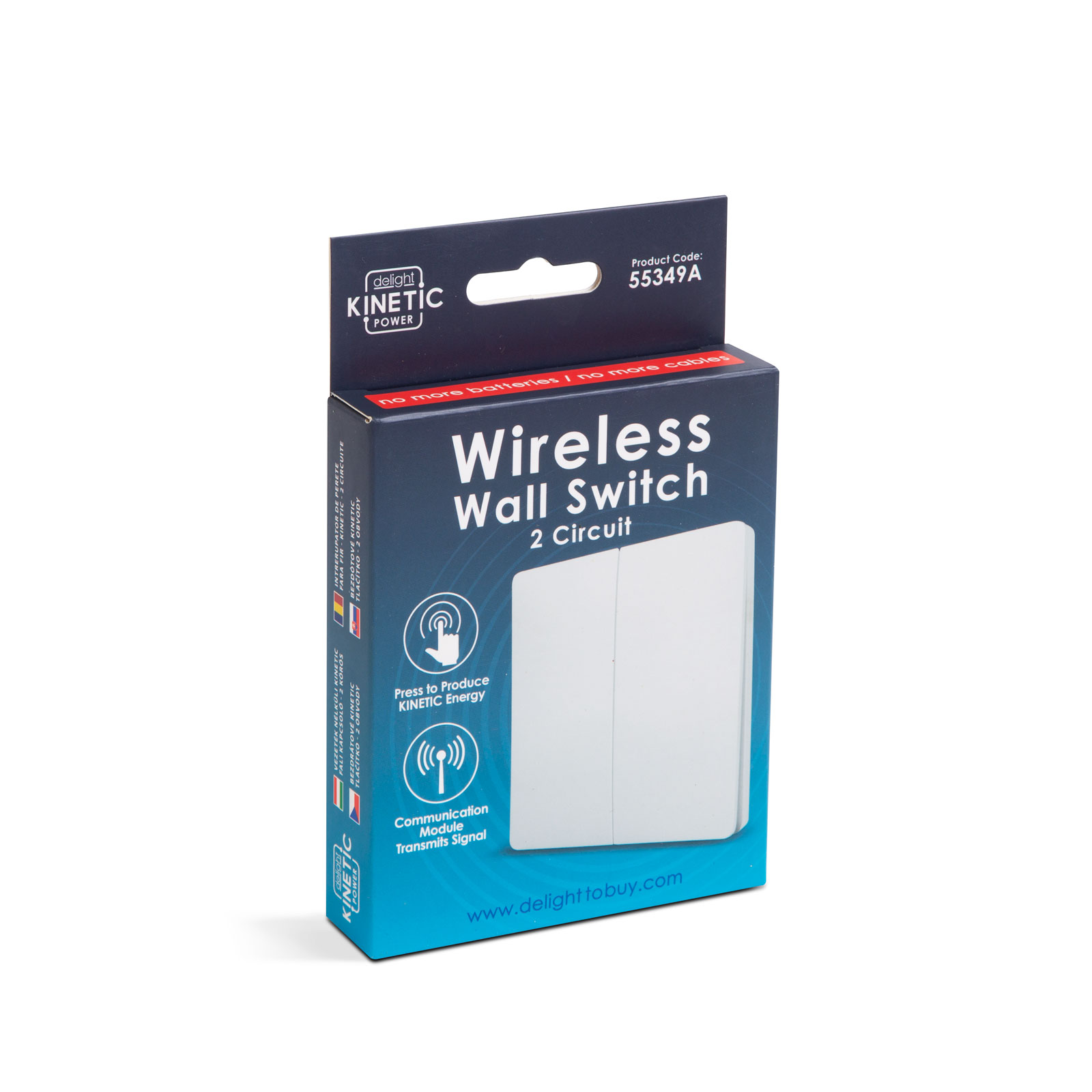 Intrerupatorul de perete al celei mai recente familii de comutatoare wireless KINETIC a marcii Delight, care poate fi utilizat fara cabluri si baterii, facilitand comutarea consumatorului conectat la controler. Pentru a utiliza produsul este necesara si achizitionarea uneia dintre unitatile de control 55356 sau 55357 din gama Delight! Cumpararea la unitate permite o structura modulara, astfel incat toata lumea sa poata crea o retea de comutare care se potriveste nevoilor sale.Tehnologia KINETIC face posibila comutarea oricarui circuit cu fiabilitatea binecunoscuta, fara baterii sau alte surse de alimentare externe. Instalarea sa este usoara datorita spatelui autoadeziv, poate fi amplasat oriunde in casa dvs., nu este necesar sa sculptati un perete sau sa instalati un cablu.Usor de instalatCompatibil cu doua tipuri de controlereEste disponibil in versiuni cu un buton si doua butoaneAspect elegant, alb matSuprafata placuta la atingereDesign subtireFunctionare silentioasa, senzatie excelenta de comutare Numar de circuite comutabile:2Frecventa radio de functionare:433 MHzGama:max. 100 m (exterior)max. 30 m (in interior)Tip de operare:86Modul de comunicare:CERETip de cip:EV1527Durata de viata:+100000 Ciclu de comutareMontare:Surub, ancora, banda adeziva cu doua fete (inclusa)Protectie:IP65Marimea:86 x 86 x 16,5 mmCuloare:Alb matGreutate:~75 g