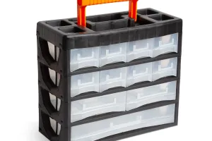Puteti lucra eficient numai in conditii ordonate! Cu ajutorul acestui organizator portabil, puteti pastra separate pe marimi si tip piese mici, suruburi, dibluri, cuie, intrerupatoare sau alte componente electronice necesare pentru lucrari. Datorita elementelor de divizare, puteti separa pana la 24 de tipuri de accesorii. Sertarele transparente si detasabile ofera o vizibilitate buna.