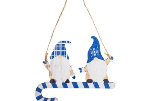Decor de Craciun - Lemn, spiridus albastru - 15 cm