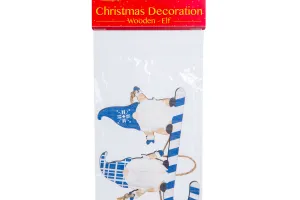 Aceasta frumoasa figurina cu spiridusi din lemn poate fi un plus perfect pentru decorarea de Craciun din casa ta. Spiridusi frumos lucrati, stand pe un baston bomboana, evocand bucuria sarbatorilor. Ornamentele din lemn confera caldura si naturalete oricarei decoratiuni festive. Pictura elaborata si detaliata asigura un aspect meticulos si atragator. Figurina este o bucata de lemn puternica, dar usoara, care poate fi agatata oriunde in casa ta.