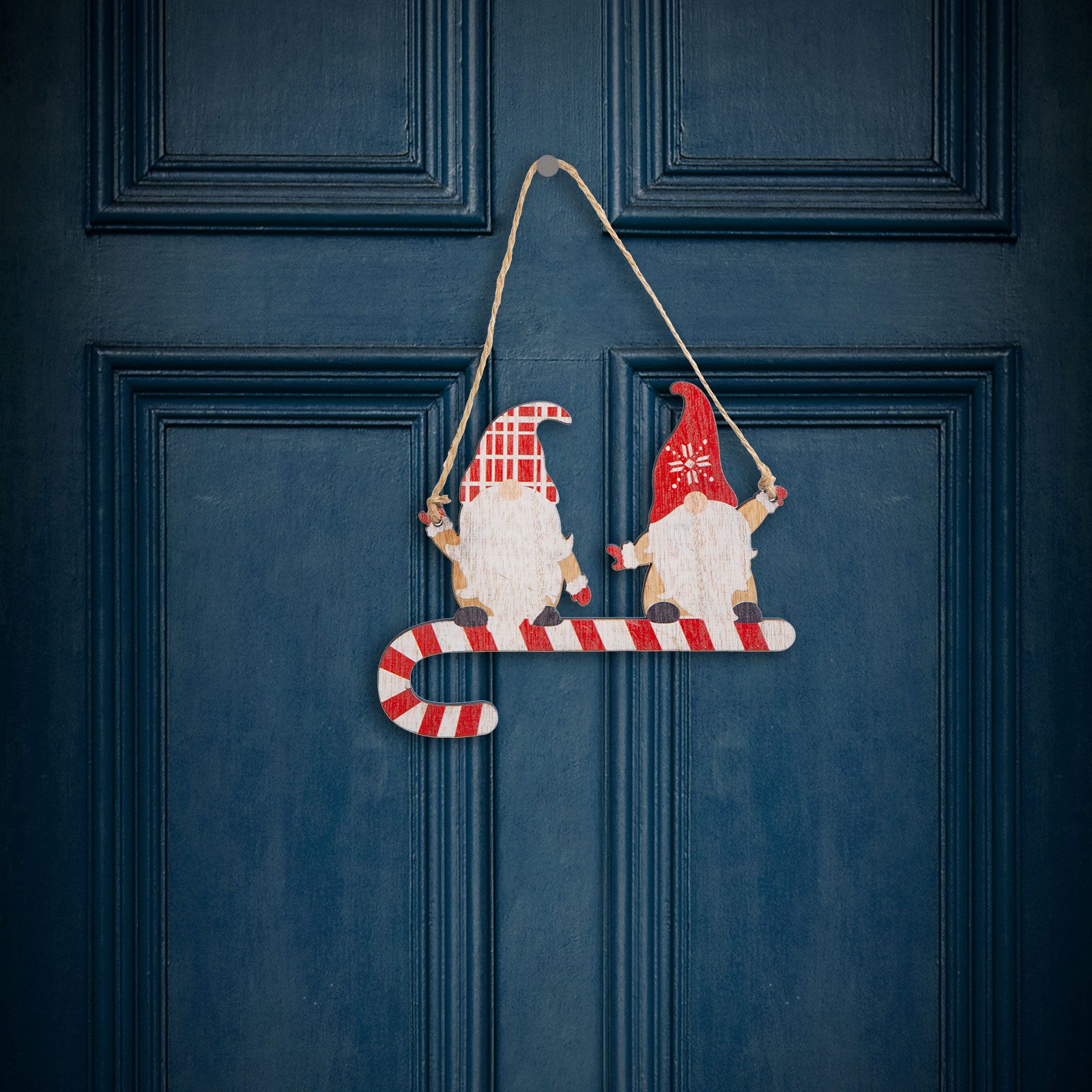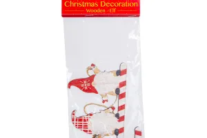 Aceasta frumoasa figurina cu spiridusi din lemn poate fi un plus perfect pentru decorarea de Craciun din casa ta. Spiridusi frumos lucrati, stand pe un baston bomboana, evocand bucuria sarbatorilor. Ornamentele din lemn confera caldura si naturalete oricarei decoratiuni festive. Pictura elaborata si detaliata asigura un aspect meticulos si atragator. Figurina este o bucata de lemn puternica, dar usoara, care poate fi agatata oriunde in casa ta.