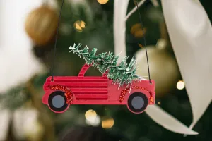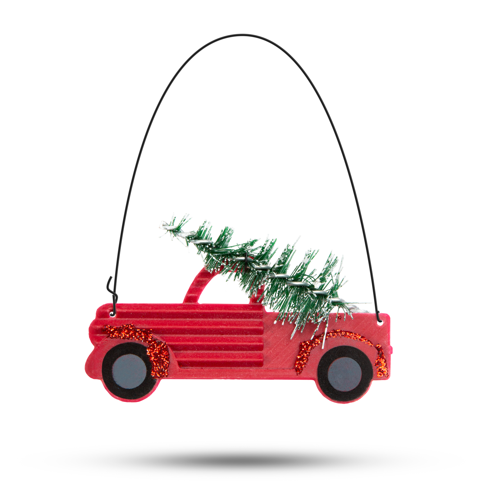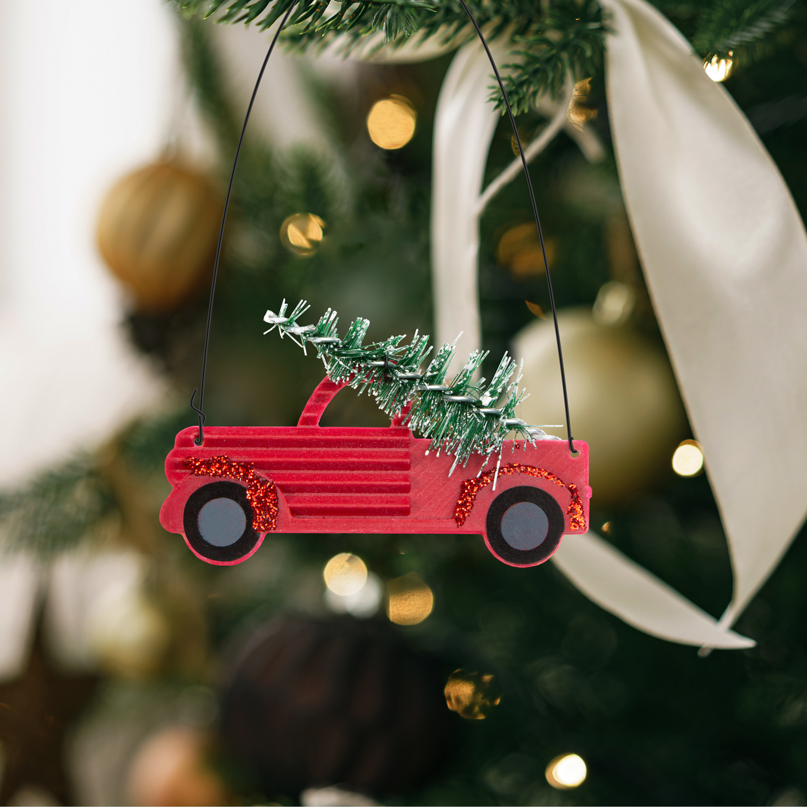Un decor esential pentru bradul de Craciun pentru pasionatii de masini! Cu aspectul deosebit al masinii mici si al bradului de pin deasupra, cu siguranta va fi un decor aparte in bradul tau de Craciun. Masina mica, cu arcade stralucitoare pentru aripi ofera o priveliste magica. O idee grozava de cadou care va aduce zambetul pe buzele tuturor! Rosu stralucitorCu brad de Craciun inzapezit deasupraCu agatatoare Dimensiune:7 x 5 x 2 cmCuloare:rosieMaterial:Plastic, metalContinutul pachetului:4 buc/pachet