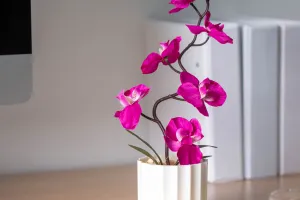 Descoperiti simplitatea de a va decora casa, biroul sau spatiul comunitar cu aceasta planta artificiala magica, decorativa!O planta artificiala eleganta, cu aspect elegant, culoarea sa realista si detaliile bogate vor da viata oricarui spatiu. Aceasta planta ornamentala va adauga instantaneu prospetime si naturalete mediului inconjurator, in timp ce se imbina perfect cu interioarele minimaliste, moderne sau chiar traditionale.Plantele artificiale pot fi o alegere ideala pentru orice mediu, deoarece nu numai ca ofera un aspect estetic, dar au si un efect pozitiv asupra starii de spirit. Mediul calm si armonios creat de plantele verzi ajuta la reducerea stresului si la imbunatatirea starii generale de bine. In acelasi timp, poate fi folosit si pentru a decora spatii cu putina lumina in care este ingreunata cresterea plantelor vii.Orhideea disponibila in 3 culoriFara intretinereCulori fideleDetalii bogateAspect vesel Dimensiune:O11 x 35 cmMaterial:PlasticCuloare:Roz, violetÂ