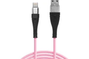 Cablu de date cu invelis siliconic pt. iPhone cu conexiune „lightning”. Ofera transfer de date rapid si sigur intre PC, notebook si iPhone, iPad. Datorita invelisului elastic este mult mai rezistent de cat cablurile similare clasice. Ideal pt. incarcarea iPhone, iPad