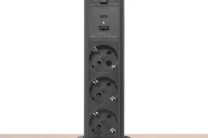 Distribuitor ascuns retractabil motorizat pentru birou si uz casnic, cu carcasa metalica, 3 prize cu protectie pentru copii, unitate de incarcare USB dubla. Design care se potriveste in majoritatea suprafetelor si modelelor, optiune de instalare verticala, suprafata de control moderat impermeabila.