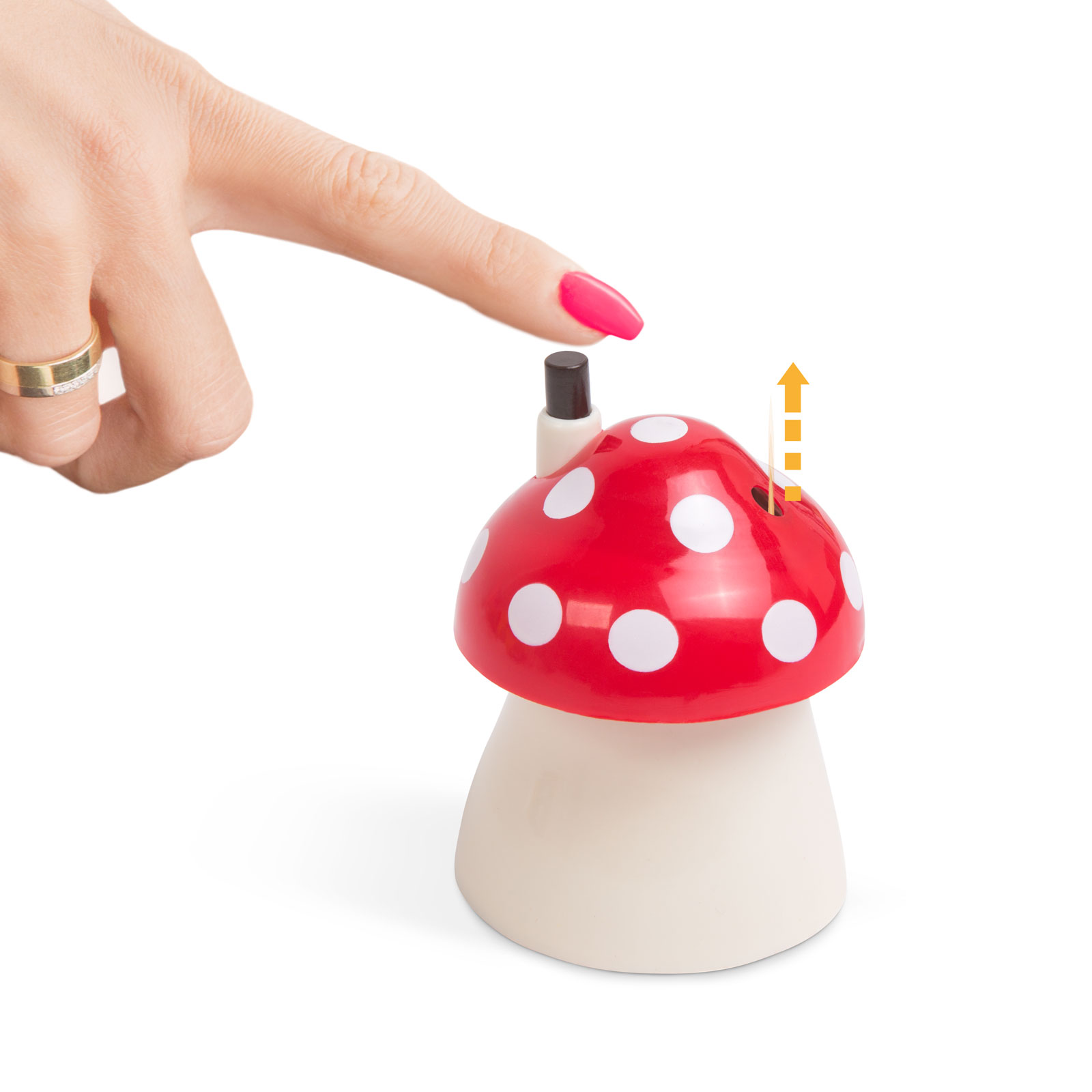 Dozator de scobitoare automat, cu magazie incorporata! Apasati pur si simplu butonul din partea superioara a ciupercii si veti obtine o scobitoare. Designul vesel este decorativ pe orice masa din gospodarie, sau restaurant. Palaria ciupercii este detasabila, magazia fiind astfel reincarcabila.