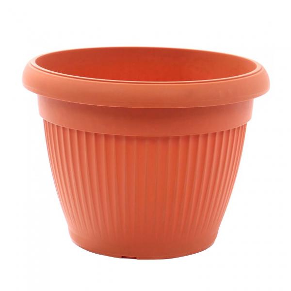 Ghiveciul din plastic de culoare teracota, poate fi pozitionat atat in interior cat si in exterior si este ideal pentru florile dumneavoastra indiferent daca sunt naturale sau artificiale. Acesta este usor de curatat si intretinut, fiind rezistent in timp, are un design clasic, cu dungi in relief. Daca aveti plante sensibile la tipuri de lumina si trebuie mutate des, ghivecele de plastic sunt solutia, deoarece acestea sunt foarte usoare. Ghivecele pot fi folosite atat individual, cat si impreuna cu farfuriile complementare.