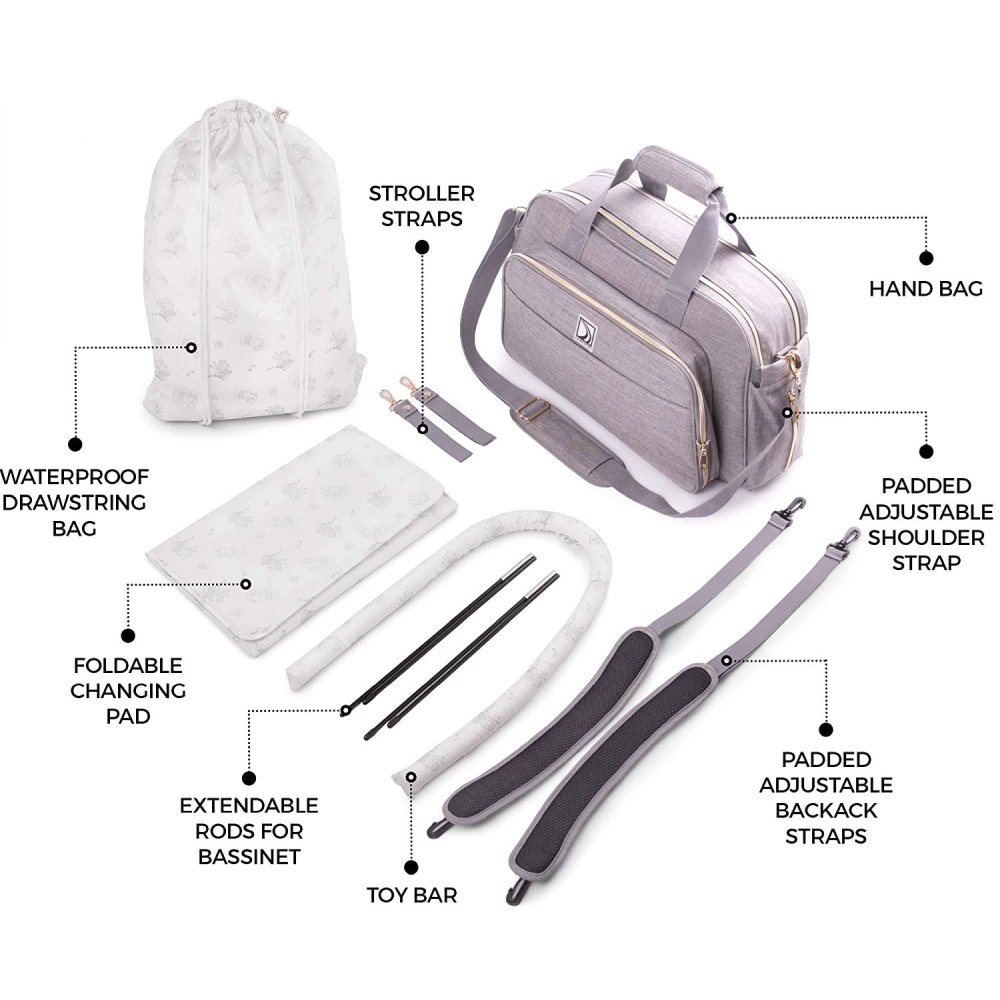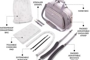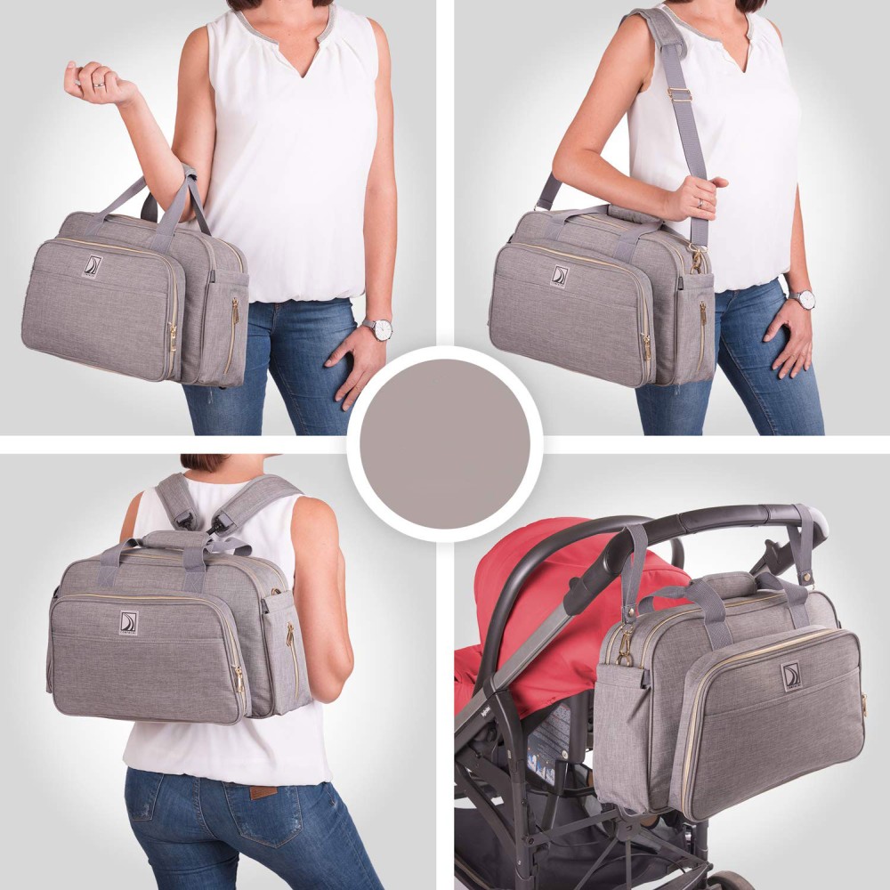 O geanta multifunctionala pentru copii, geanta de scutec e si patut de calatorie cand este deschisa. Poate fi o alegere ideala pentru mamici si bunici in calatorii, drumetii, vacante.GriAre o capacitate mareCu fermoarCaptuseala moaleCu buzunare laterale Dimensiune geanta:50 x 26 x 16 cmDimensiune in pozitie deschisa:86 x 50 x 26 cmCuloare:GriMaterial:PoliesterCapacitate:15 LNumar de buzunare:6