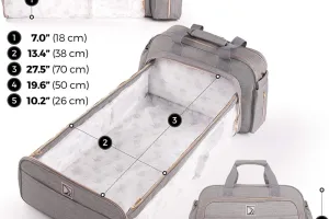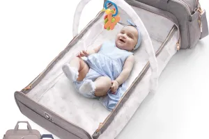 O geanta multifunctionala pentru copii, geanta de scutec e si patut de calatorie cand este deschisa. Poate fi o alegere ideala pentru mamici si bunici in calatorii, drumetii, vacante.