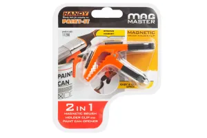 Accesoriu practic pentru fixarea cu clema a pensulei pe marginea galetii de vopsea. Majoritatea pensulelor dispun de soclu metalic, ca atare pot fi fixate magnetic de bordura galetii. Vopsea picura din pensula in galeata - ajutand la mentinerea curata a locului de munca si conduce totodata si la economie de vopsea.Terminal cauciucatDeschizator pentru cutiile de vopsea incorporatFixarea pensulei in doua moduriUtilizabil cu majoritatea pensulelorCompatibil cu orice galeataClema puternica, nervurataDimensiuni: 90 x 50 x 30 mmMaterial: Mat. plastic + magnetNr. magneti: 2 buc.Deschiderea maxima a clemei: 27 mmCuloare: PortocaliuMasa: ~ 92 g