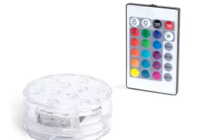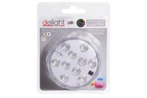 Atmosfera speciala de wellness si la domiciliu! Creati o atmosfera unica in jacuzzi sau piscina cu iluminare pentru piscina LED Delight RGB. O experienta de cinci stele in fiecare zi si tot controlul este in mana Dvs.Mod imersie: Acest mod este cel mai potrivit daca doriti sa creati efectul apei colorate in piscina dvs. sau in jacuzzi. Greutatea de imersie permite luminii LED sa se scufunde si sa lumineze apa dinspre jos.Date tehnice:Nr. LED-uri:         10 buc.Raza de actiune a telecomenzii:     8 mRaza de actiune a telecomenzii in apa:        40 cmProtectie:             IP68Intensitate luminoasa:       110 lumeniNr. culori:             13 (rosu, verde, albastru, portocaliu, galben, verde deschis, verde inchis, albastru deschis, albastru deschis, albastru profund, violet, roz, alb)Functiile telecomenzii:      schimbare lenta a luminii, salt de lumina, creste / scade luminozitateaBaterie: Iluminarea LED: 3xAAA, alcalin Telecomanda: 1xCR2025, Baterie butonDimensiuni:         diametru: 7 cm ,inaltime: 2,4 cmMasa:    98,5 g (111 g cu baterii) Continutul setului:   1 buc. lampa LED imersabile si telecomandabile   1 buc. telecomanda (contine bateria)