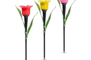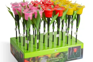 Lalea solara LED - galben / rosu / roz - 31 cm - 12 buc / afisaj
