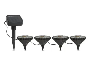 Cele patru flori pot fi aranjate dupa dorinta folosind tarusii de fixare. Pe masura ce se intuneca, lumina se aprinde automat si se stinge la rasaritul soarelui.