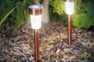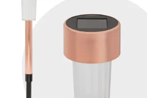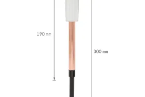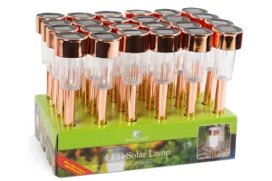 Confera aspect deosebit gradinii tale. cu lampi solare. Foloseste-le ca lumina de ghidare, sau ca decoratie in aer liber. Cu ajutorul tarusului de fixare, amplasarea este cat se poate de simpla. La lasarea crepusculului, lampa se aprinde, dimineata insa, lampa se stinge automat. In timpul zilei, panoul solar transforma lumina in energie electrica, ce va fi acumulata in acumulator.   Instalare simpla, fara cabluri   Usor de asamblat   Carcasa rezistenta la stropii de apa   Aprindere automata la lasarea intunericului   Iluminare de durata lunga, datorita acumulatoarelor reincarcabileSursa de lumina:       1 buc. LED-uriCuloarea LED:          Alb receAlimentare:    2 V / 10 mA CC, Panou solarAcumulator:   Acumulator NiMh, 1,2V, 40 mAhDimensiune totala:    300 x 45 mmDimensiune tarus      110 mmMaterial:        MetalCuloare:        Auriu rose