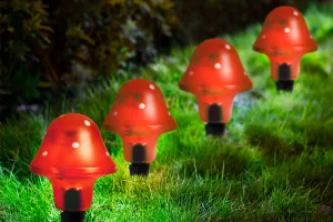Lampa solara ciuperca LED - rosu - 11 cm
