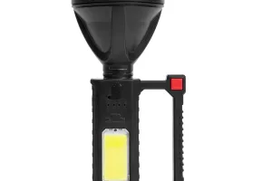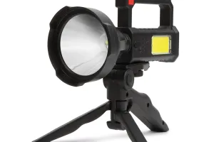 Un proiector cu un design durabil, dimensiuni mici, dar cu o luminozitate enorma, care garanteaza o functionare de lunga durata datorita functionarii cu baterie. LED-ul XPE50 CREE de inalta performanta, extra luminos, poate emite pana la 200 de metri de lumina strapunzatoare, astfel incat sa poti conta pe el in toate conditiile. Carcasa ergonomica are protectie IP55, astfel incat ofera servicii excelente chiar si pe vreme ploioasa si umeda. Utilizarea comoda a lampii este garantata de doua tipuri de manere antiderapante, cu nervuri, dintre care unul poate fi transformat intr-un trepied cu trei picioare, astfel incat sa poata fi plasat oriunde si sa ilumineze zona de lucru ca o lumina constanta. Poate fi echipament ideal pentru drumeti, vanatori, pescari, echipe de cautare, agenti de securitate sau chiar autoritati.