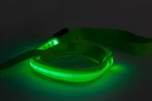 Plibarile de seara vor fi de acum facute in siguranta si vor atrage atentia! Aceasta lesa LED va asigura ca tu si catelul tau sunteti usor de observat pentru soferi si biciclisti in timpul plimbarilor. Chiar si in intuneric, veti fi in siguranta. Functionare economica, cu baterie. LED de luminozitate ridicata.Carabiniera cromata Rezistent la stropii de apa Dimensiune lesa: 120 x 2,5 cm Sursa de alimentare: 2 baterii 2032 Capacitate baterie: 40 mAh Timp de incarcare: 2 ore Adaptor compatibil: 5V USB - 1A Timp de functionare (cu o singura incarcare): 2 ore Lungimea sectiunii de iluminat: 30 cm Culoare LED: alb cald - 3000 K Numar de LED-uri: 1 Luminozitate LED: 35 lm Culoare lesa: VerdeMaterial: tesatura Dracon (material asemanator panzei) Greutate: ~ 80 g