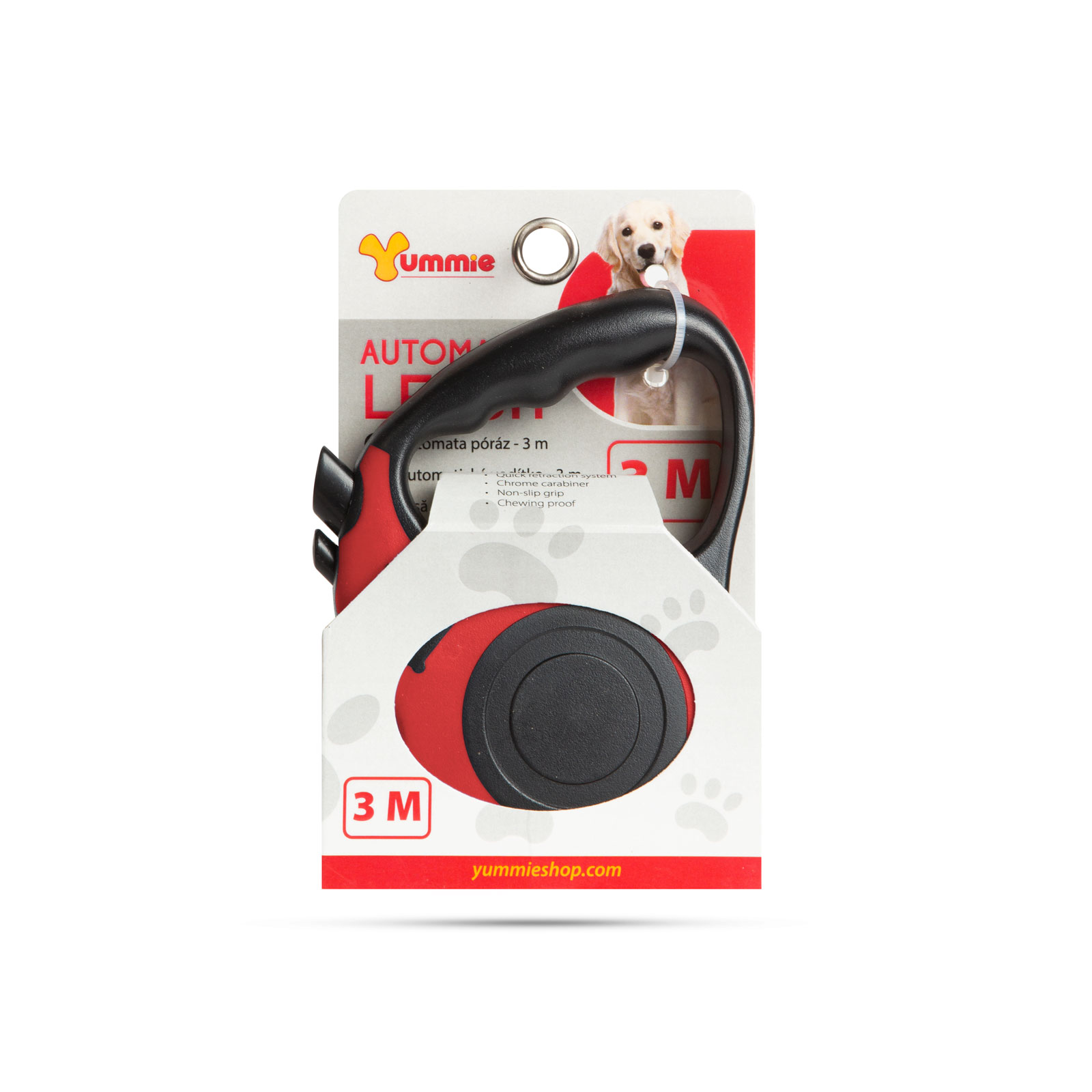 Cu aceasta lesa, animalul tau de companie nu va mai hoinari, dar poti controla cu usurinta cat de departe doresti sa il lasi sa se plimbe. Sistemul de retragere a lesei incorporat previne caderea sau incurcarea lesei libere.Cu sistem de franare puternic, ce poate fi actionat cu o singura mana.Sistem de retragere rapida Design modernCarabiniera cromata Maner anti-alunecare MasticabilaLungime lesa: 3 m Capacitate maxima: 30 kg Dimensiunea lesei 130 x 90 x 28 mm Culoare: rosieMaterial: plastic Greutate: ~ 115 g