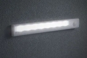 Usureaza cautarea obiectelor in dulapuri, senzorul de miscare actionand lampa fara a fi nevoie de utilizarea vreunui intrerupator manual. Este ideal pt. orice mobilier, sau chiar pt. iluminarea portbagajului masinilor. Lumina puternic datorita celor 8 LED –uri SMDSenzor de miscare cu raza de 5 m, in unghi de 120°Decuplare automata dupa cca. 25 sec.Foarte economicoasaSursa de lumina: 8 buc. LED  SMDTip senzor de miscare: PIR (infrarosu)Raza de actiune:  5 m, in  unghi de 120°Temporizare: cca. 25 sec.Dimensiuni. 235 x 30 x 21 mmAlimentare: 4 buc. baterii AAA (1,5V) - (nu este accesoriu)