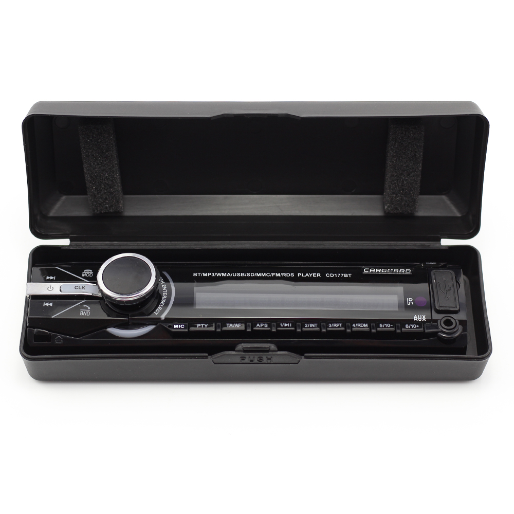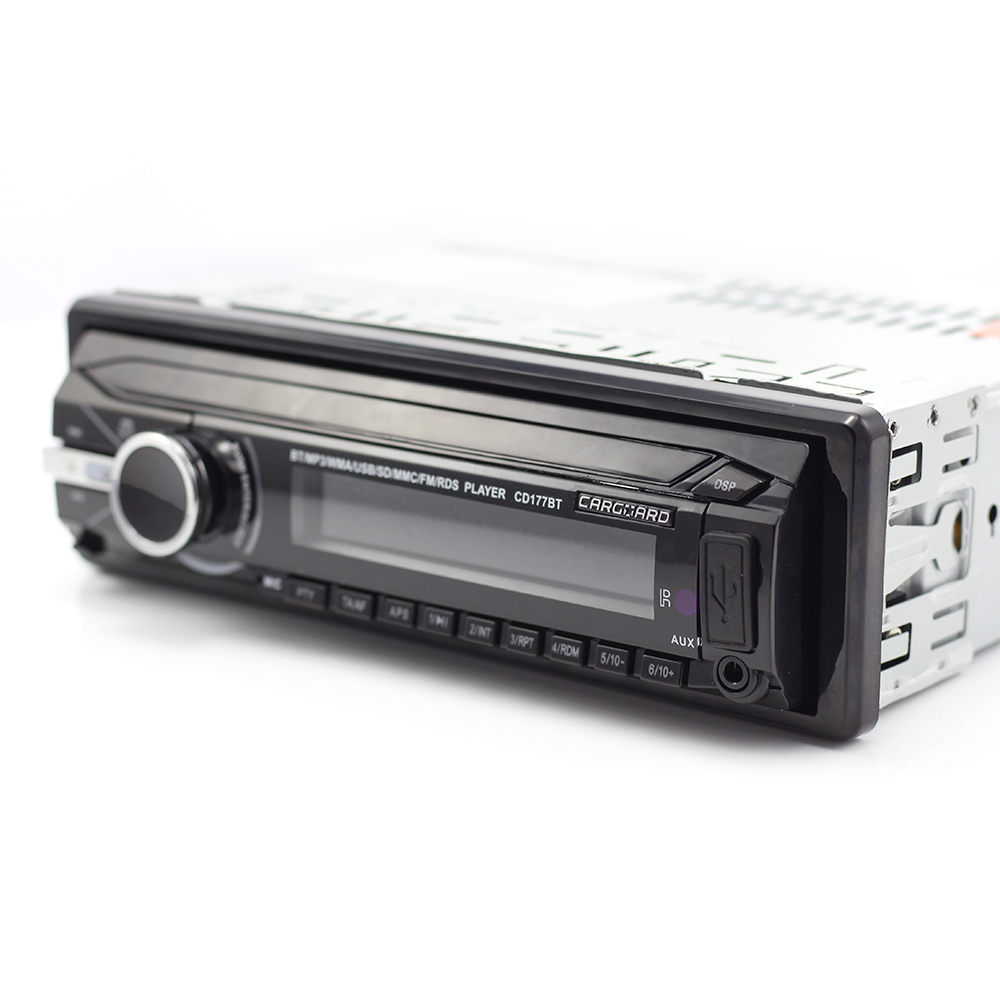 CD/MP3 playerul Carguard CD 177 este special conceput pentru a-ti oferi un maxim de confort si calitate exceptionala, la un foarte mic.Bluetooth - Car-Kit + redare muzica4 iesiri RCA pentru amplificatorPanou frontal detasabil + cutie de stocare cadouLoudness reglabil (On/off)Radio cu sistem RDSEQ reglabilTelecomanda + cablu ISO inclus in pachetIntrare AUX ( jack 3.5 mm stereo)Medii de stocare acceptate: USB/SD/MMC CardFormate acceptate MP3, WMA Specificatii tehnice:Tensiune: +12V DCPutere sunet: 4 x 50WIesiri audio: 4  RCARADIO:FM 87.5-108tMHZ StereoRDS (Radio data system)2 ani garantie.