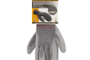 Manusi extrem de flexibile, cu palma captusita din poliuretan, captuseala din nailon si manseta elastica.Ideale pentru lucrari dintre cele mai diverse si uz general.Straturile subtiri permit miscari precise si prindere similara cu cea din lucrul cu mana libera, motiv pentru care aceste manusi sunt foarte populare in activitatile care necesita lucrul cu piese mici.Produsul respecta cerintele Directivei 89/686 / CEE, directiva europeana si standardul armonizat MSZ EN 420.Nivel de protectie: Conform EN388: 4131 Rezistenta la abraziune: 4; Rezistenta la taiere: 1; Rezistenta la rupere: 3; Rezistenta la punctie: 1 Material: poliester, poliuretan Dimensiune: L