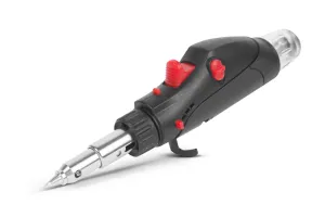 Un mini pistol de lipit cu gaz multifunctional are un loc in fiecare cutie de bricolaj.Poate fi utilizat eficient pentru lipire electronica fina, suflare cu aer cald, contractie (tub contractie) si incalzire. Acest dispozitiv compact are multe functii utile: intrerupator de siguranta, regulator de flacara, sistem de aprindere piezo, deschidere pentru controlul amestecului de gaz, fereastra rezervorului de gaz, picior de sprijin rabatabil. Prin desurubarea varfului fierului de lipit, acesta poate fi folosit chiar si ca suflanta de aer cald. Rezervorul de gaz poate fi reumplut, astfel incat dispozitivul poate fi folosit pentru o perioada lunga de timp.Continutul pachetului:Pistol de lipit alimentat cu gazVarf de lipitCap suflant cu aer caldCapac protectorValori de temperatura in utilizare:pana la 1300 °C / 2370 °FPentru lipire si incalzire a tubului termocontractabil:max. 200 °C - 400 °C / 392 °F - 752 °FMaterial:PlasticDimensiune:151 x 36 x 26 mmCuloare:NegruGreutate (gol):~55 gAtentie! Produsul poate fi folosit doar prin reumplere cu gaz propan-butan! Aparatul se vinde fara umplere cu gaz!