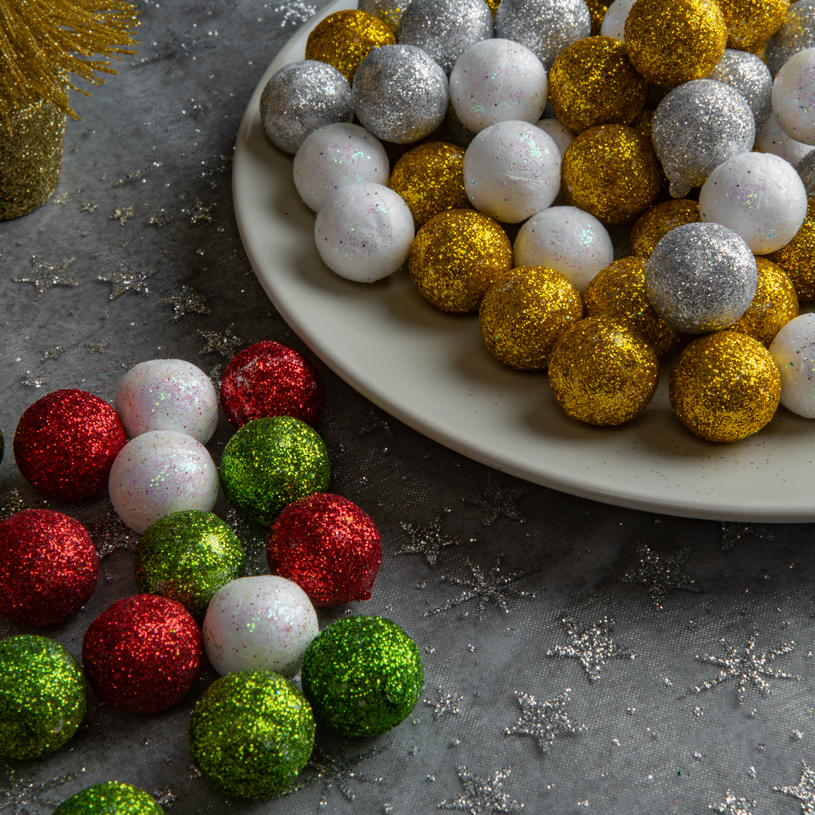 Ornament de Craciun - bile cu sclipici, din polispuma - 20 mm - 2 tipuri
