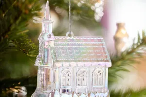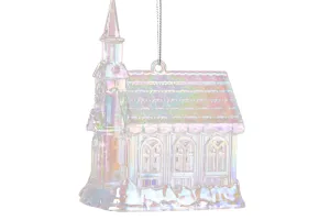 O biserica cu un efect irizat deosebit, ce impodobeste elegant bradul sau orice alt aranjament festiv. Ornamentul acrilic este usor, dar durabil, astfel incat poate fi reutilizat an de an. Datorita efectului irizat, culorile ornamentului se schimba in functie de umbre si lumini. Datorita aspectului sau elegant, acest decor de Craciun poate fi si un cadou excelent pentru cei dragi sau prieteni.