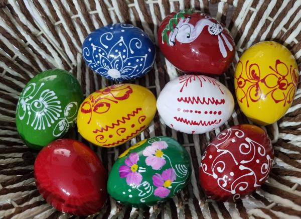 Ouale pictate din lemn sunt de marimea oualor de gaina, fiind inlocuitorul perfect pentru oua vopsite manual