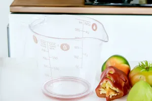 Pahar de masura - 250 ml - plastic - piersic - 14 x 7,7 x 8,8 cm