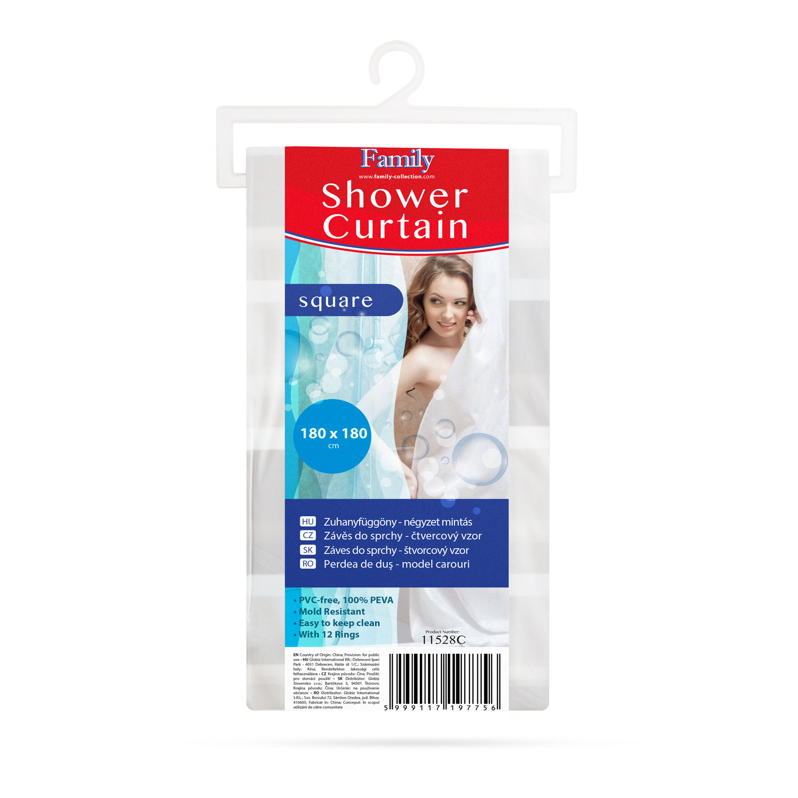Este usor de utilizat:Â doar agatati inelele in gauri si fixati-le de tija perdelei de dus.