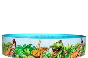 O piscina pentru copii conceputa pentru distractia acestora. O piscina cu pereti rigizi, potrivita pentru mai multi copii. Datorita peretelui rigid, acesta poate fi chiar umplut cu cantitati mari de apa. Ofera o fixare stabila chiar si dupa incarcare. Avantajul este ca nu este necesar sa umflati sau sa aveti grija de deteriorarea sau ruperea peretelui lateral. Fabricat din material durabil, vinil, PVCCu un perete lateral puternic si durModel de dinosaur distractivPoate fi folosit chiar si ca lov de joaca fara apa