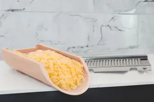 Razatoare de mana pentru branzeturi tari, ghimbir, nuci, usturoi si alte condimente. Are o suprafata de gratar din otel inoxidabil si o parte de colectare din plastic, astfel incat ingredientul razuit sa nu se destrame. Datorita duzei de turnare, puteti adauga exact cantitatea dorita in mancare.