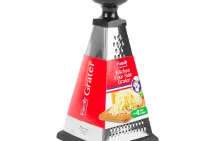 Razatoare de masa cu 4 fete, de dimensiuni medii. Pentru operatiuni generale de razuire si feliere in bucatarie. Ideala pentru razuirea legumelor si a branzei. Manerul mare garanteaza o prindere sigura, iar baza este cauciucata antiderapanta.