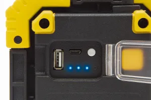 - FOARTE VERSATIL: Nelipsit din orice atelier, santier, sau chiar gospodarie. Tehnologia COB LED asigura iluminare puternica ~1000 lm  cu numai 16W, si o durata de viata a bateriei de pana la 6 ore, asigurand luminarea generoasa a spatiului de lucru;