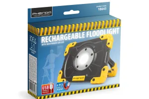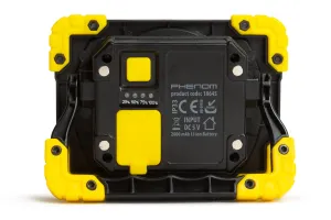 Noul produs de calitate al familiei de produse Phenom, care este de nelipsit din orice atelier, santier, sau chiar gospodarie. COB LED-ul de mare putere (5 W ~500 lm) lumineaza pana la 6 ore, oferind iluminarea generoasa a spatiului de lucru. Priza USB de 5 V incorporat asigura alimentarea ideala pentru reincarcarea telefonului. Lampa poate fi transportata si fixata cu un maner pliabil si cu magneti.2 functii:   Iluminare 100%   Iluminare 50 %   COB LED de mare putere   Acumulator incorporat 2000 mAh   Agatatoare si suport rotativ 180°   Sir LED pentru semnalizarea starii de incarcare a acumulatorului   Colturi protejate prin garnituri de cauciuc   4 buc. magnetTensiunea de intrare:    5V - 1 ATensiunea de iesire:      5V - 1 ASursa de lumina:           COB LED de mare puterePutere: 5 WIntensitate luminoasa:  500 lumeniDurata de viata a LED-ului:       25000 oreTemperatura de culoare LED:   6500 °KAlimentare:       Acumulator Li-Ion 2000 mAhDurata iluminarii la 100% intensitate:     ~3,5 oreDurata iluminarii la 50 % intensitate:      ~7 oreDurata de incarcare      6 oreNr. cicluri de incarcare: 500 cicluriProtectie:          IP33Dimensiuni:      123 x 93 x 36 mmMasa:  190 gÂ