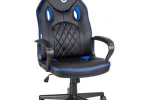 Scaun gamer cu aspect modern si design ergonomic. Suprafata sezutului suplimentar captusita si spatarul inaltat asigura un scaun de lunga durata, confortabil, asa ca il recomandam nu numai jucatorilor, ci si celor care fac munca continua de birou. Poate fi folosit pentru a preveni dezvoltarea spatelui inferior si a durerilor de spate.Inaltime reglabila continuu folosind un arc cu gazFix, cotiera puternicaPlacaj ranforsat, rezistent Limita maxima de greutate:suprafata scaunului 110 kgDimensiunea scaunului:53 x 47 cmDimensiunea spatarului:71 x 53 cmLatime cotiera:6,5 cmInaltime cotiera:25 cmGama de inaltime:45 - 55 cmCuloare:Design in 2 culori (negru / albastru)Â