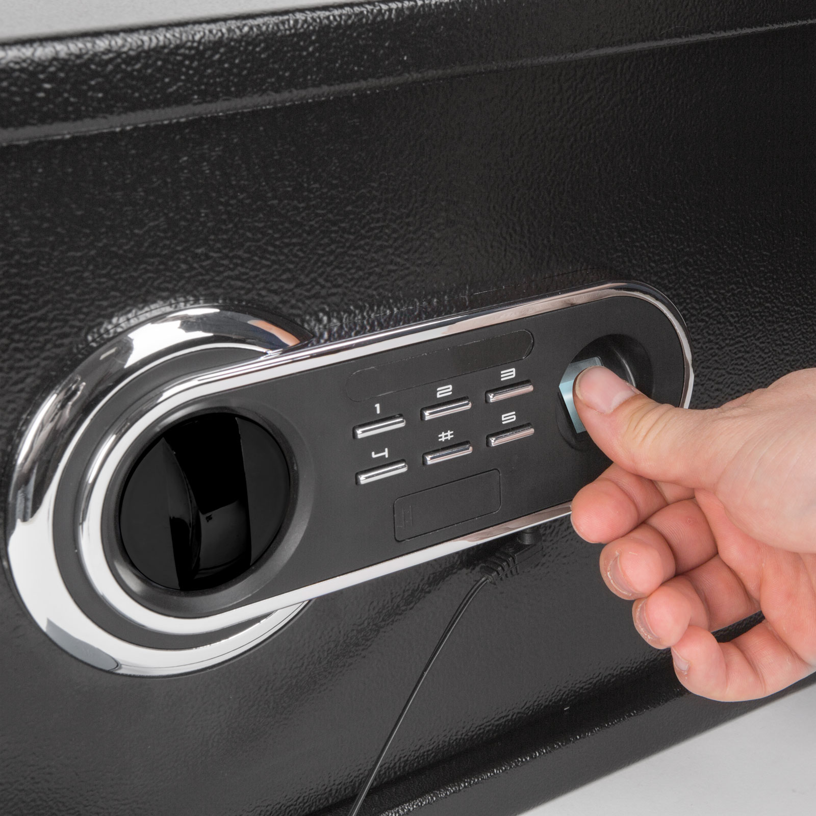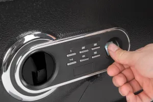 Seiful are sistem de securitate cu scaner de amprenta si memorie in care pot fi stocate pana la 120 de amprente. In plus beneficiezi si de protectie PIN.
