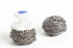 Set burete de spalat vase din fibre de otel - 2 buc. + maner