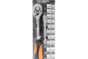 Set 12 buc. chei tubulare, cu clichet. Tubulare: 10 mm - 22 mm Manerul cauciucat ofera priza comoda si sigura, iar datorita dimensiunilor compacte, ofera acces si in locurile greu accesibile.