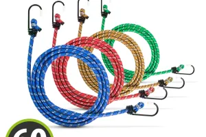 Set de cordeline de fixare profesionale pt. fixarea bagajelor.Atentie! Nu folositi pt. ridicare! La extindere tineti cont de rezistenta la intindere a cordelinei! La fixare acordati atentie la pericolul de recul, pt. evitarea accidentelor! Nu folositi cordelina pt. fixarea obiectelor ascutite sau taioase! Inainte de utilizare verificati integritatea cordelinei!Carlige metalice, rezistenteExtensibilitate mareInvelis rezistentLungime:Â Â Â Â Â 60Â cmMaterial:Â Â Â Â Â Â 80% cauciuc, 20 % latexSarcina admisa: max. 6Â kgExtensibilitatea:Â Â Â Â Â 50Â %Culoare:Â Â Â Â Â Â Rosu, albastru, galben, verdeContinutul pachetului:Â Â Â Â Â Â 4 buc. cordeline elastice