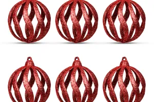 Set decor brad - globuri rosii stralucitoare - 7 cm - 6 buc/pachet