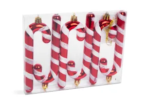 Set decor pentru brad - trestie de bomboane rosu / alb - 13 cm - 6 buc / set